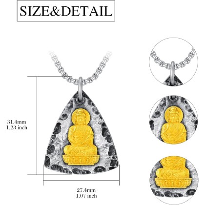 Fathers Gift Buddha Necklace for Men Women 925 Sterling Silver/14K Gold Plated Buddhist Necklace Chinese Lucky Talisman Amulet Protection Ideal Gifts for Christmas Xmas