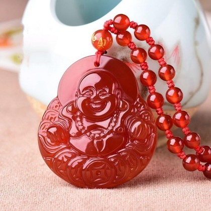 Natural agate Stone Handmade Carved Lucky Happy laughter Maitreya Buddha Pendants Amulet Necklaces