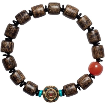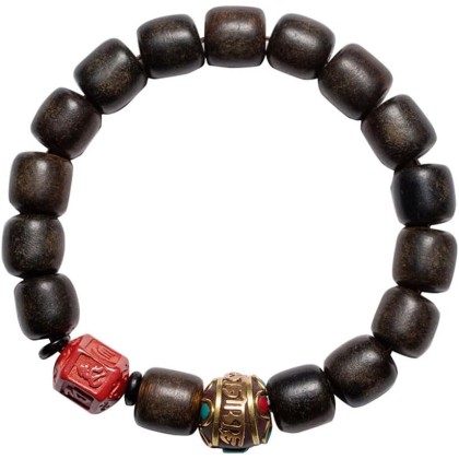 11Mm Agarwood Bracelet Tibetan Copper Bead Bracelet Cinnabar Six Word Proverbs Buddha Bead Prayer Bracelet