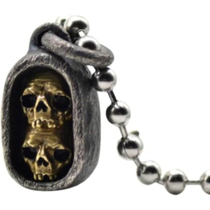 Chinese Vintage 925 Silver Skeleton Skull Buddha Beads Pendant Necklace Men Women Collectables Jewelry Accessories Gift