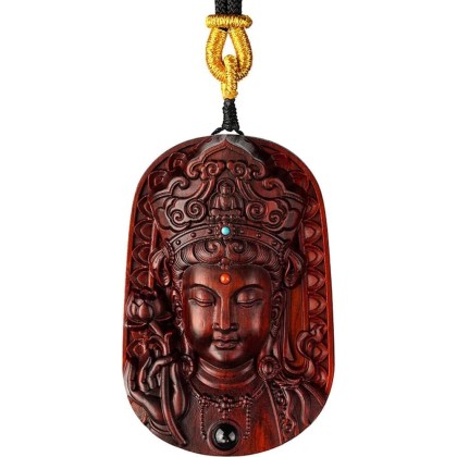 Sandalwood Buddha Statue Pendant Necklace, Feng Shui Rosewood Handmade Wood Carving, Tibetan Buddhist Jewelry for Zen Meditation Decor, Wealth Luck Amulet, Religion Gift