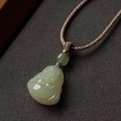 Natural Hetian Jade Maitreya Buddha Pendant Necklace (with lanyard) for Women Yoga Genuine