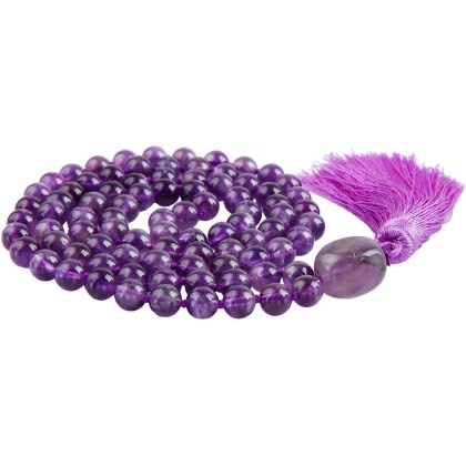 Amethyst 108 Tibetan Buddhist Mala Bracelet Stone Beaded Prayer Bead