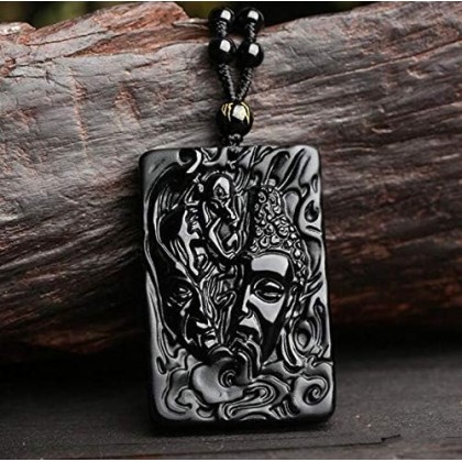 Story Untold Nephrite Jade Square Female Buddha Pendant Necklace Goddess of Compassion and Mercy GOOD FORTUNE Buddhist Jewelry