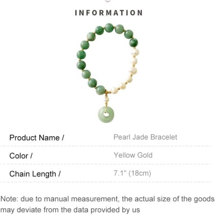 14K Gold Jade Pearl Bracelet, Pearl Beaded Stretch Bracelet