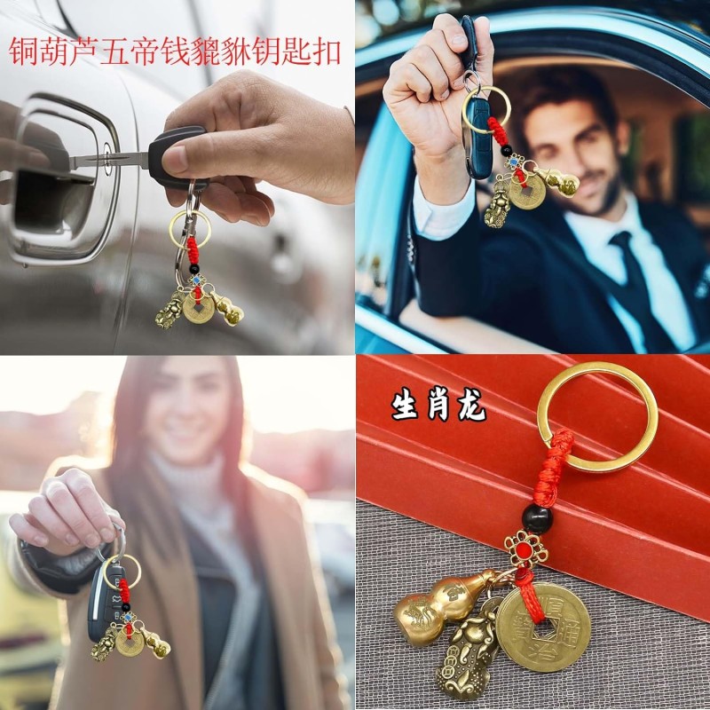 - [Quality Material]: The Hu Lu decor and feng shui coins are made of high quality pure copper, sturdy and durable; the red Chinese Knot tassel is made of cotton rope, smooth and soft, easy to carry; the Feng Shui gourd brass wu lou keychain is made of pure copper, delicate and smooth, exquisite workmanship.