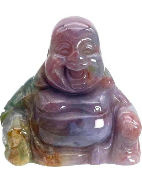 Carving Indian Agate Laughing Happy Buddha Statue, Natural Healing Maitreya Pocket Figurine Home Decoration Fengshui 1.5 Inches