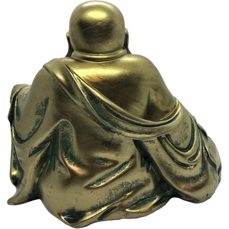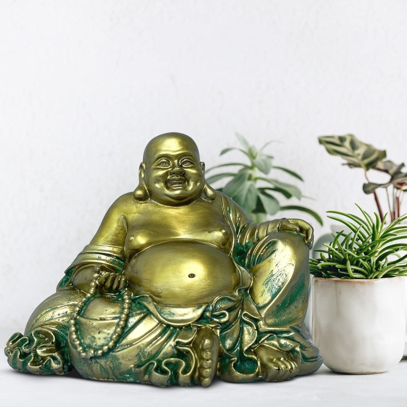 - Gold Buddha Statue - Happy and joyful fat Buddha statue is here to brighten your day. This Budha decoration statue sits perfectly amongst your spiritual room decor or as part of your gold shelf decor