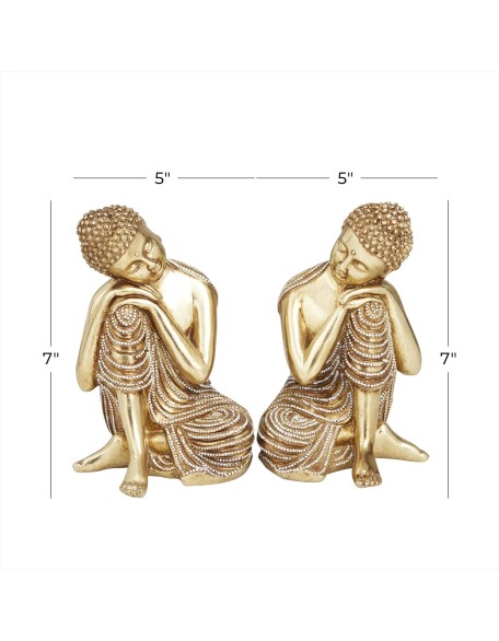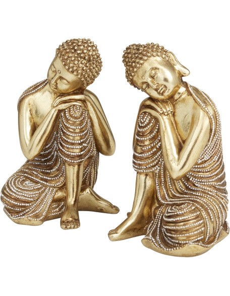 - GOLD HOME DECOR FIGURINES: This buddha decorative statues set highlights a satin gold finish, complemented by subtle hues of bronze for added depth