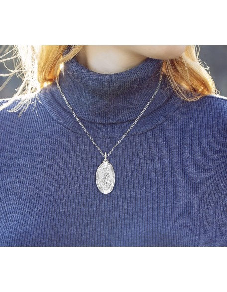 - ✅FEATURES: A oval shape, die stamped lettering, and a detailed embossed figurine of Mary