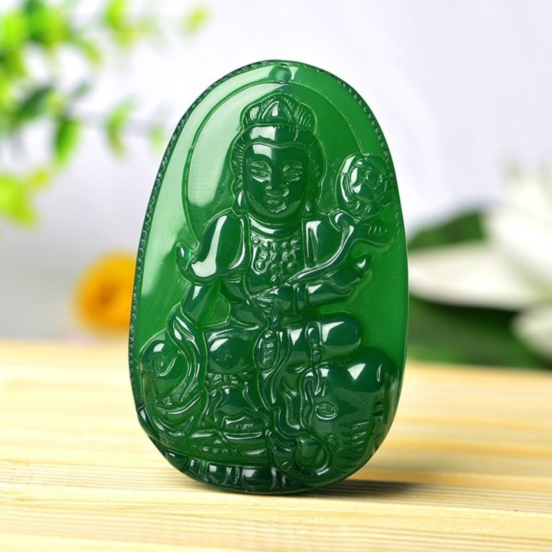 - Samantabhadra Buddha Bodhisattva pendant necklace amulet made of 100% natural Green agate gemstone.