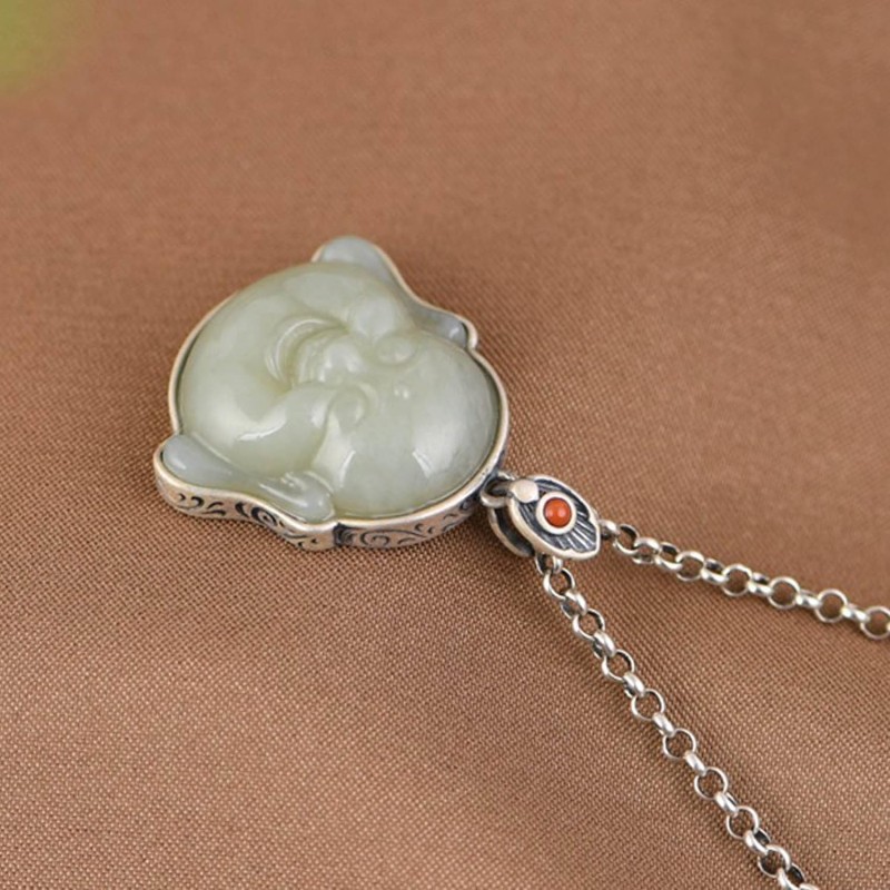 - Feng Shui Wealth Prosperity Silver Necklace- Specification: 21*28mm; Material: Sterling silver, hetian jade. Easy to Wear: Silver necklace, durable and lightweight, excellent workmanship, can ensure a smooth surface and good gloss, and can be used for a long time.
