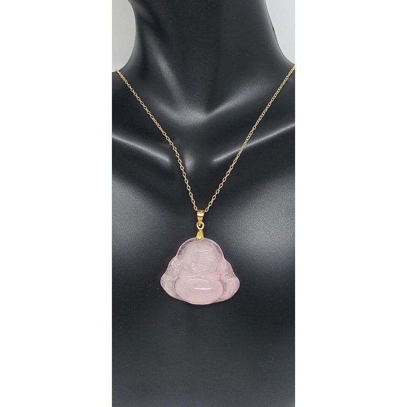 - PINK Jade Buddha Yellow Gold-Plated Pendant / Necklace 16" - 2" Extended Chain.