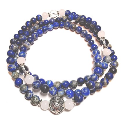 PROTECTION AGAINST NEGATIVE ENERGIES Lapis Lazuli + Jade + Quartz 108 Japa Mala Beads Yoga Meditation Necklace Heart Chakra Third Eye Chakra Real Natural Stones Guru Beads & Mantra Bead - USA HANDMADE
