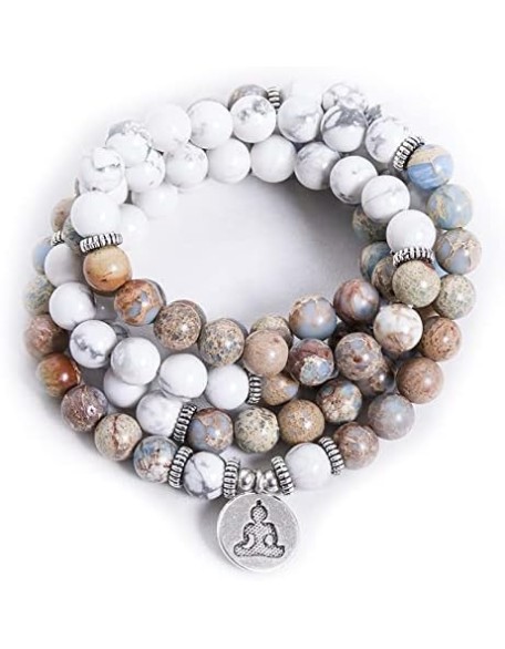 8mm Natural Emperor Jasper Beaded Elastic Cord Wrap Bracelet Meditation Yoga Healing Jewelry 108 Mala Women Bangle (Buddha)