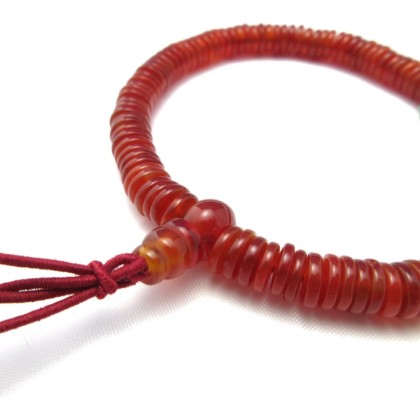 108 Gemstone Flat Beads Bracelet Japanese Juzu Rosary Prayer beads Meditation Chakra Handmade in Kyoto Birthday Gifts for men (red agate)
