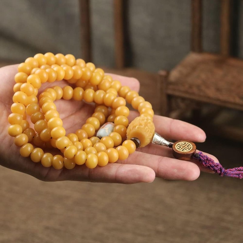 - The size of beads is about 8*10mm, and each bracelet has about 108 beads. This is a bracelet that you can play with. Rubbing the bracelet will make it more shiny and make you feel good.