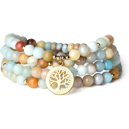 Tree of Life 108 Mala Beads Stone Wrap Bracelet Necklace