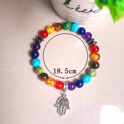 Natural Fashion Seven Chakra Beaded Bracelet Alloy Peach Heart Chain Agate Crystal Strand