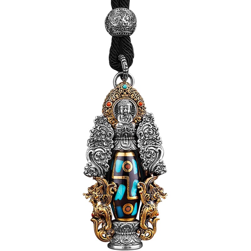 • Material:The Whole Is Made Of S925 Silver,Embellished With Brass,Inlaid With Turquoise And Red Agate,Hand-made Three-dimensional Carving,Smooth Lines,Delicate Texture,And Lifelike.The Nine-eyed Dzi And Dharma Wheel Can Rotate.