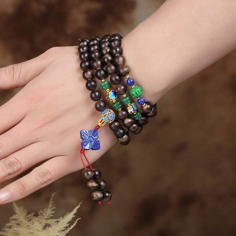 - Excellent Craftsmanship. Unique 108 beads design with lapis lazuli flower pendant. The mysterious and bizarre fragrance of agarwood is a collection of thousands of years of aura, some secluded, some warm and some clear! !