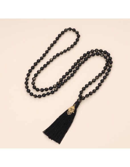 - Material: 8mm Golden Obsidian/Gold Sheen Obsidian; Gold plated stainless steel Hamsa Hand Charm