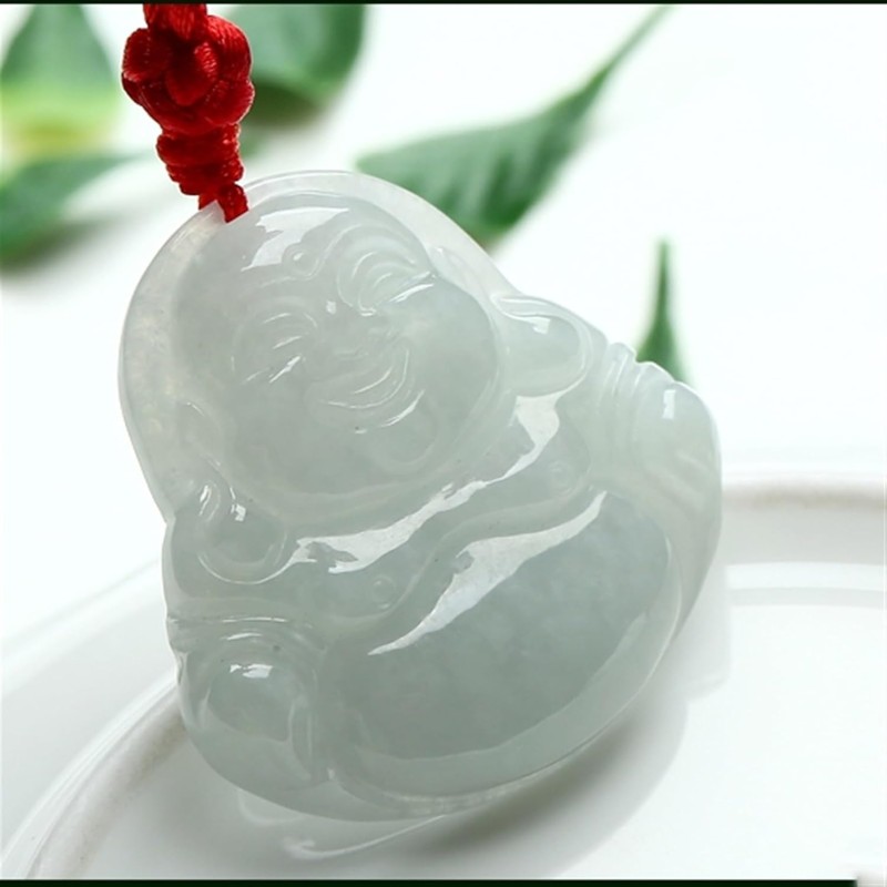Jade Necklaces for Women Men, Natural Jade Buddha Pendant Laughing Buddha Burmese Jade Pendant