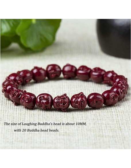 Bracelets Bracelet for Women Adjustable Feng Shui Wealth Cinnabar Natural Cinnabar Laughing Buddha Head Beads Stretchy Bangle Amulet Beaded